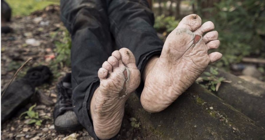Bàn chân một người di cư tróc da trên hành trình gian khổ để vào Mỹ. Khi Bức tường Berlin sụp đổ, có 15 hàng rào biên giới giữa các quốc gia. Ngày nay, 63 hàng rào đang tồn tại. Thế giới hiện đại và toàn cầu hóa đang tạo nên nhiều bức tường rào hơn bao giờ hết.