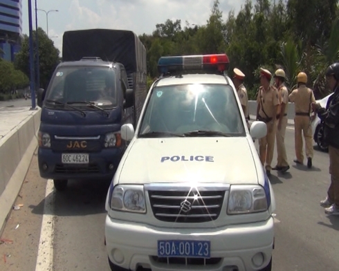 Ngay sau đó, tổ công tác phối hợp với Đội chỉ huy giao thông và điều khiển đèn tín hiệu giao thông (Phòng CSGT đường bộ, đường sắt Công an TP.HCM) truy đuổi đến gần khu vực hầm Thủ Thiêm thì chặn được 2 xe này và đưa về trụ sở để làm việc.