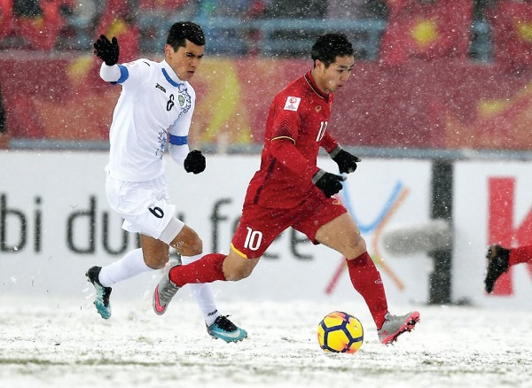 Lúc ấy, sân cỏ Thường Châu (Trung Quốc) đang bước vào mùa đông, tuyết rơi dày lên cả gang tay. Những chân sút vàng U23 Việt Nam bước ra trận, mang cái màu đỏ dân tộc đi giữa điều kiện thời tiết khắc nghiệt!