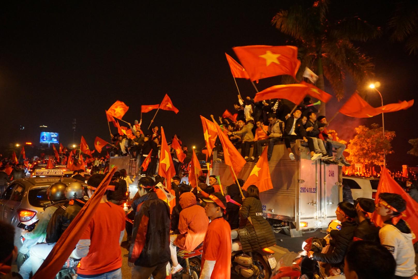 Người người tràn ra những con đường, đổ về trăm ngã phố để chung vui. Ai nấy thi nhau hô to khẩu hiệu: “Việt Nam vô địch!”, “Việt Nam vô địch!”, “Việt Nam vô địch!”,…, câu nói đơn giản hàm chứa cả bao tự hào.