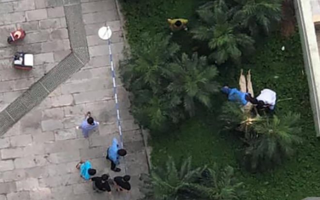 Theo đó, khoảng 10h30 cùng ngày, Công an phường Ngọc Lâm đã nhận được tin báo phát hiện thi thể nam giới rơi từ trên cao xuống khu vực bãi cỏ cạnh bể bơi tầng 6 toà nhà Mipec Long Biên.