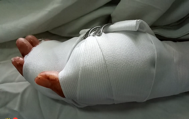 Chị H. bị 3 thanh niên chém trọng thương ở cánh tay.