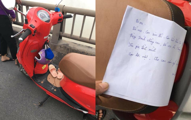 Hình ảnh xe máy cùng lá thư nữ giáo viên để lại.