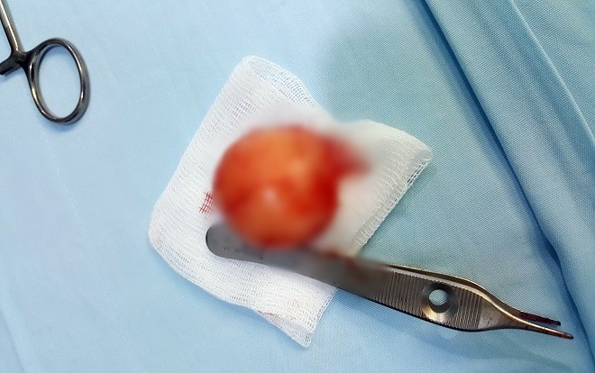 Ngay sau đó, bệnh nhân đã được phẫu thuật cắt bỏ u và gửi mô làm sinh thiết để xác định u lành tính hay ác tính.