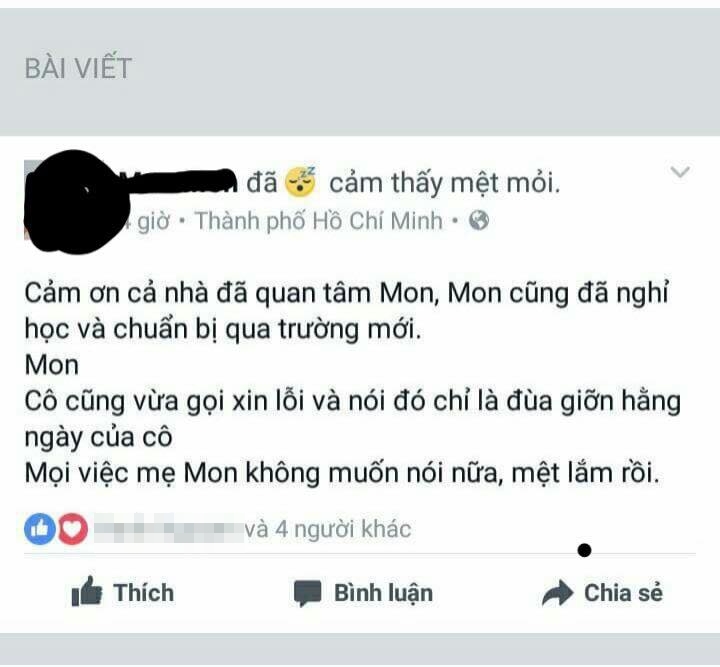 Bạn Viên Đình cũng có chung quan điểm: “Hiệu trưởng mà hành hung như thế, bảo sao những giáo viên khác không dữ. Họ cũng là con người, cũng có con và cũng từng làm mẹ mà sao độc ác vậy.”