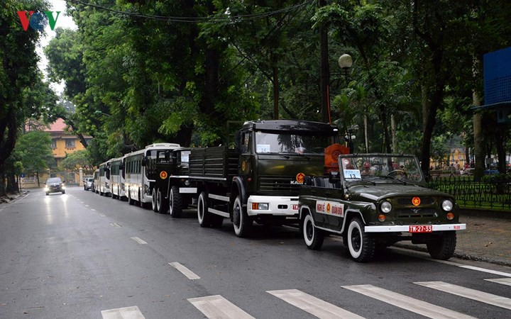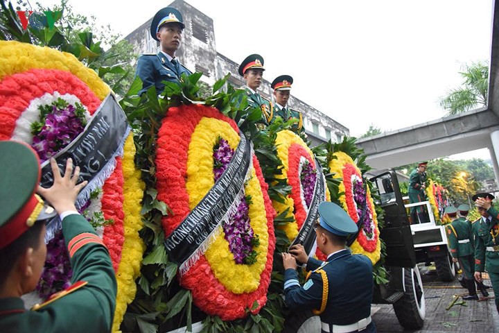 Các chiến sĩ trong Đội nghi lễ đang xếp các vòng hoa lên xe.