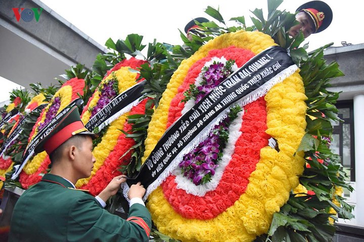 Lễ truy điệu Chủ tịch nước Trần Đại Quang sẽ diễn ra lúc 7h30 sáng nay tại Hội trường Nhà tang lễ Quốc gia số 5 Trần Thánh Tông, Hà Nội. Cùng thời gian này, lễ truy điệu đồng chí Trần Đại Quang cũng được tổ chức tại Hội trường Thống Nhất, Quận 1, Thành phố Hồ Chí Minh và quê nhà của ông ở xóm 13, xã Quang Thiện, huyện Kim Sơn, tỉnh Ninh Bình.