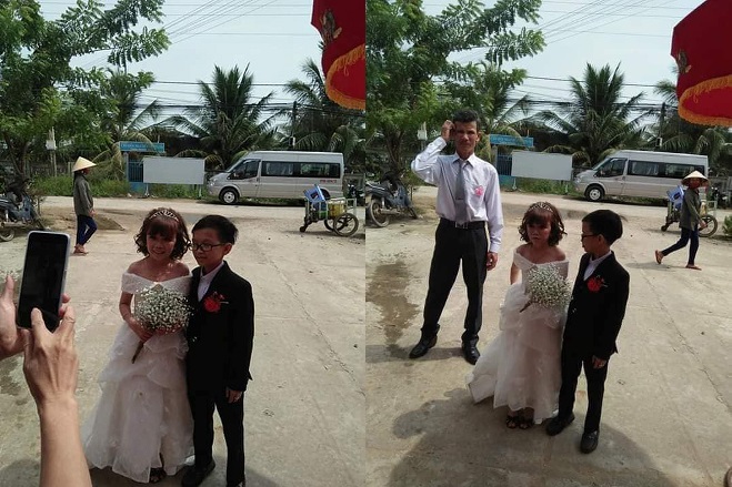 Mới đây, mạng xã hội chia sẻ loạt hình ảnh đám cưới của cặp đôi tí hon khiến nhiều người chú ý. Đáng nói là 2 nhân vật chính của đám cưới, cả cô dâu lẫn chú rể đều có ngoại hình tí hon, gương mặt trông như học sinh tiểu học.