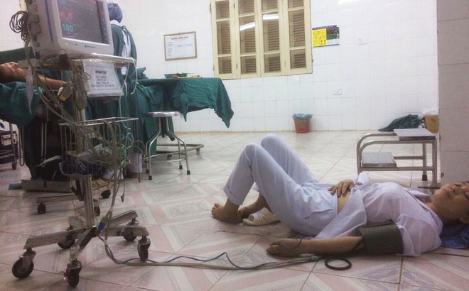 Hình ảnh người mẹ của tác giả bài viết là một bác sĩ khoa sản đang ngất trên sàn bệnh viện sau khi kết thúc ca phẫu thuật gây bão mạng.