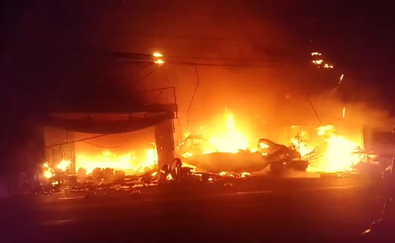 Ngọn lửa bùng cháy dữ dội và lan nhanh sang các ngôi nhà bên cạnh. Ảnh: SGGP