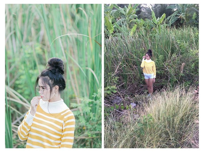 Nếu chỉ nhìn những tấm ảnh bên trái, bạn sẽ thấy gì? Một cô nàng xinh đẹp mơ màng giữa đồng cỏ, e ấp bên những bông hoa, thẹn thùng dưới tán lá cây. Rất lung linh, lãng mạn và rất… “deep”, đúng không? Hình thế này ai mà không like thì đúng là tội ác!
