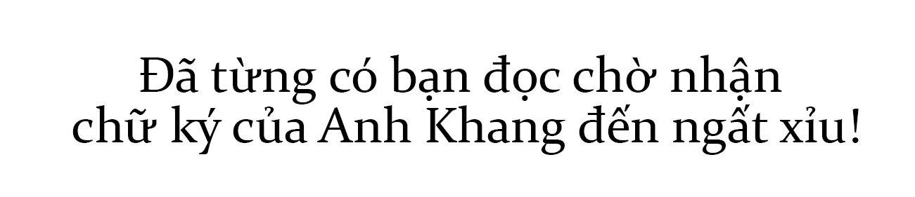 Câu chuyện đó khiến cho Khang trong suốt 7 năm viết sách, đều rất ăn năn. Vì rõ ràng, chữ của mình xét kỹ chẳng mấy đẹp, văn của mình xét nét cũng chẳng quá hay, nhưng đã có những người bạn, người em, người anh, người chị, và cả các cô chú lớn tuổi… đã đồng cảm cùng mình trong những trang sách như thế.