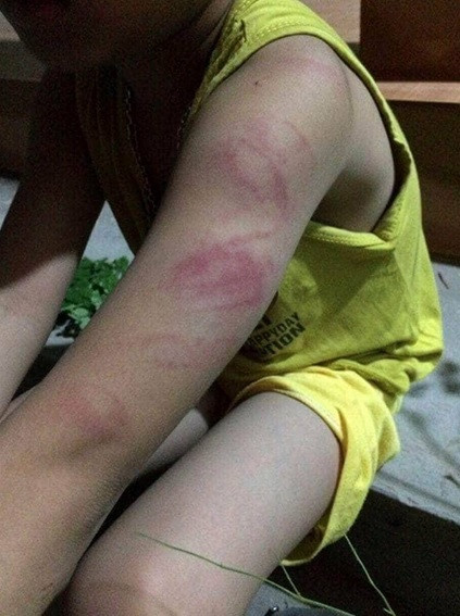 Học sinh lớp 1 bị cô giáo đánh bầm tím tay. Ảnh: GĐCC.