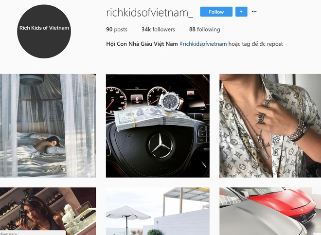 Bài viết chủ yếu được tổng hợp từ tài khoản Instagram “Rich Kids of Vietnam” (tạm dịch: Hội con nhà giàu Việt Nam) với những hình ảnh về cuộc sống sang chảnh, thú vui xa xỉ của người trẻ với hơn 34.000 lượt theo dõi.