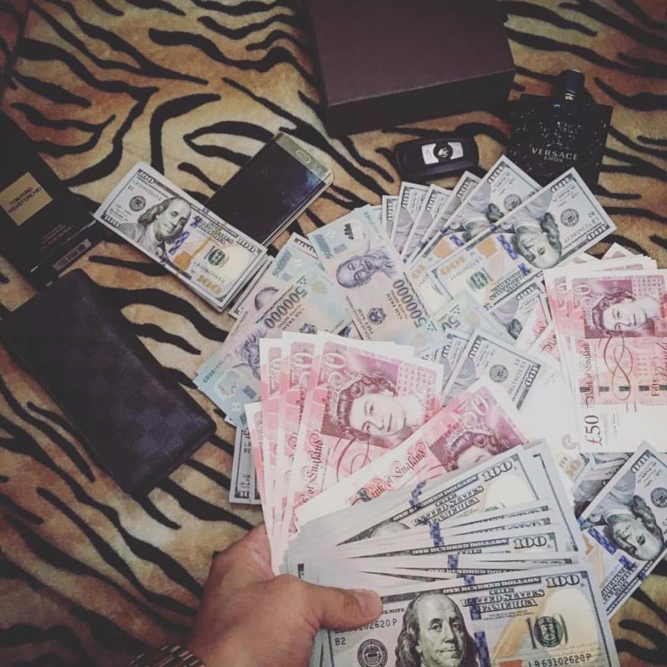 Tiền mặt, chìa khóa xe hơi và nước hoa đắt tiền.