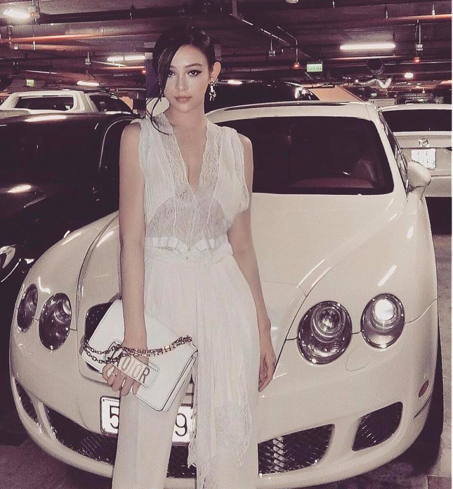 Huyền Baby bên chiếc xế hộp sang trọng và túi xách Dior.
