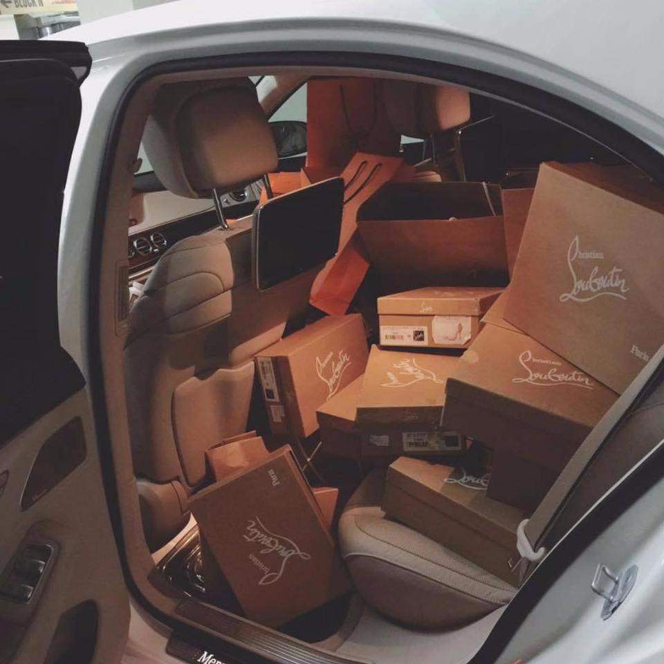 “Chiến tích” sau một buổi mua sắm là giày Louboutin (giá phổ biến từ 11 triệu - 26 triệu đồng/ đôi) được chất đầy cả xe.