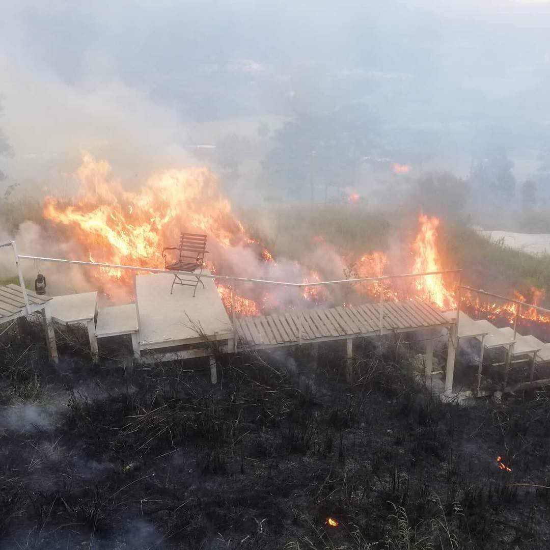 Vì nằm trên đồi cao, cỏ khô và gió thổi không ngừng nên đám cháy vẫn lan rộng sang những khu vực lân cận. Với sự giúp sức của nhiều người xung quanh, ngọn lửa dịu dần, nhà có phần bị cháy trụi nhưng may mắn là khu vực lưu trú không bị hư hại.