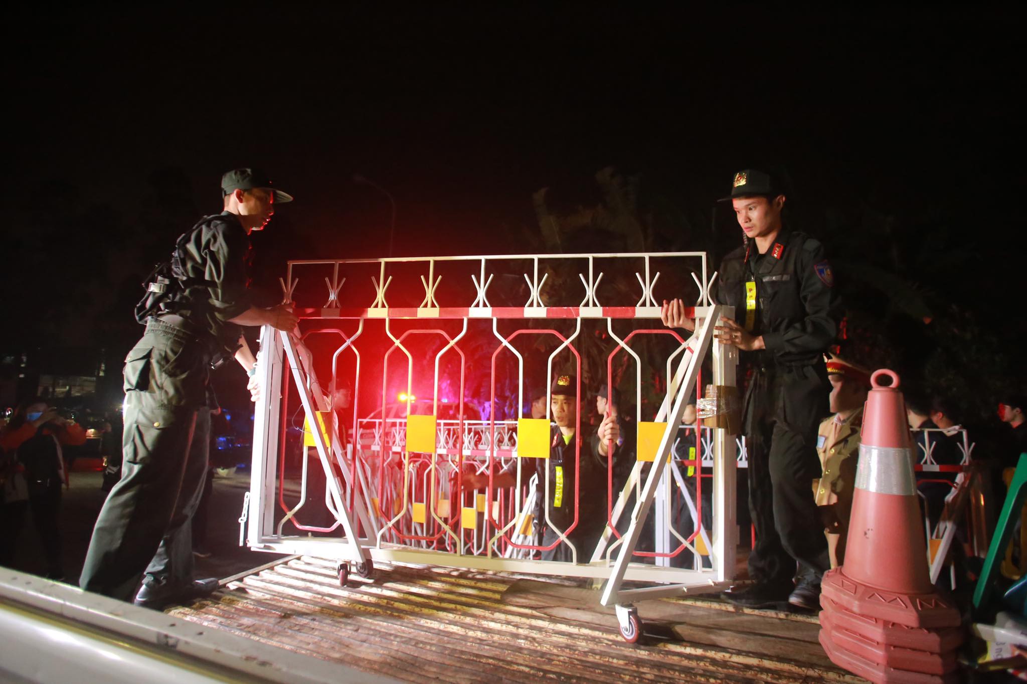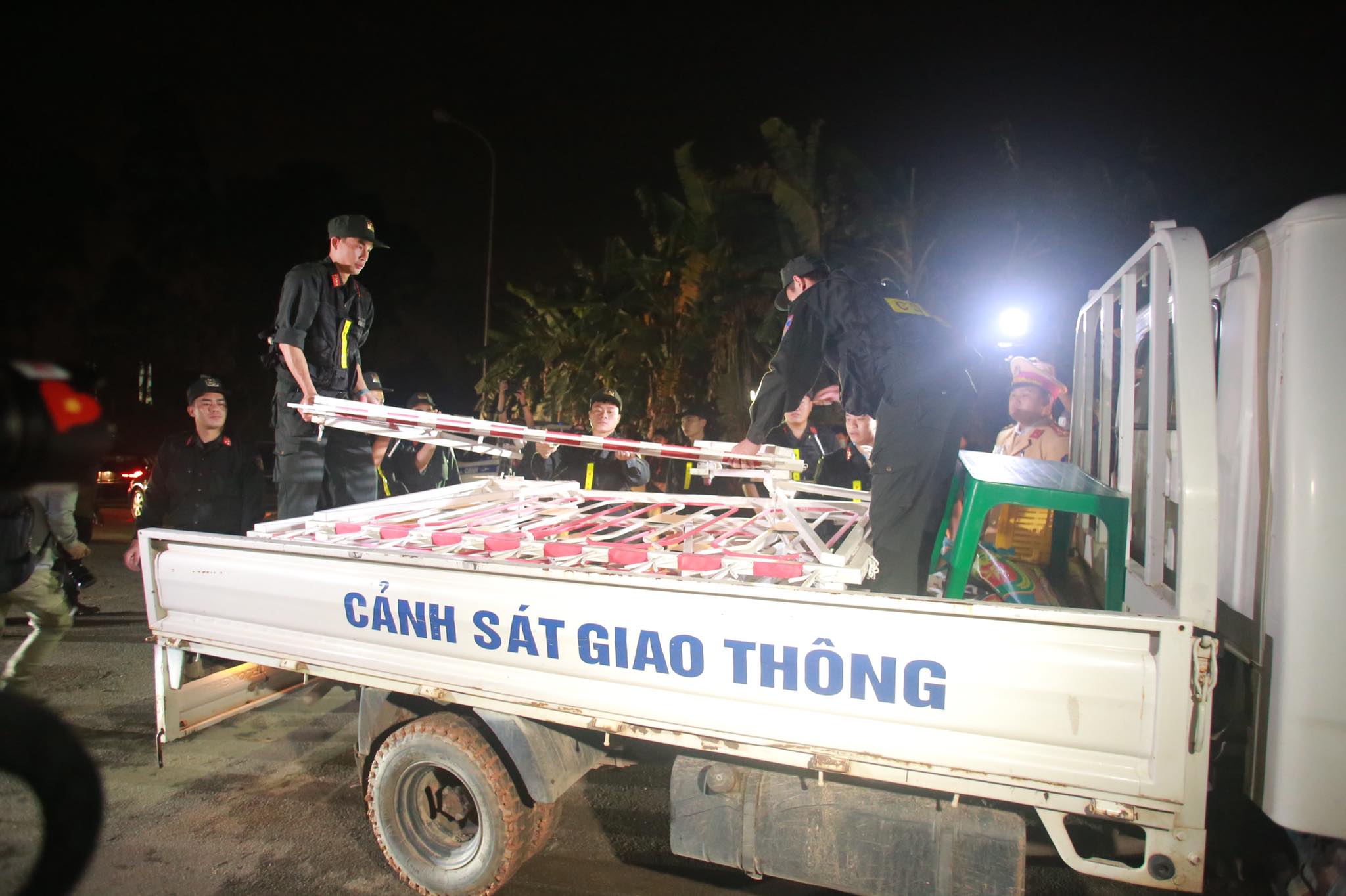 Lực lượng cảnh sát thu dọn hàng rào sau khi chính thức dừng cách ly xã Sơn Lôi.