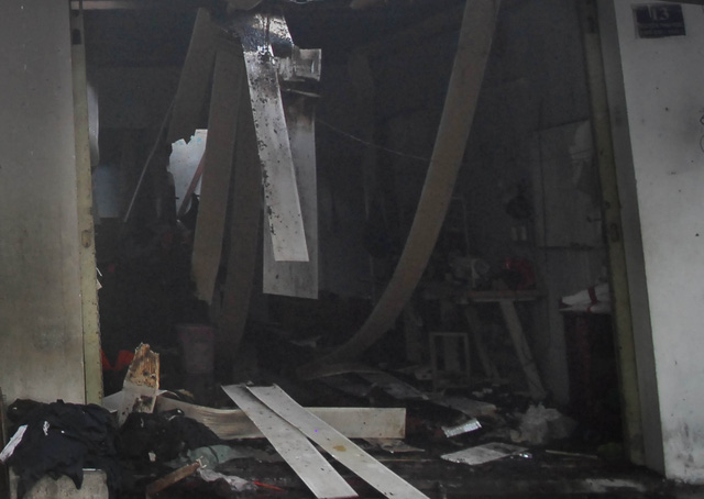 Căn nhà là cơ sở may mặc bị cháy tan hoang.