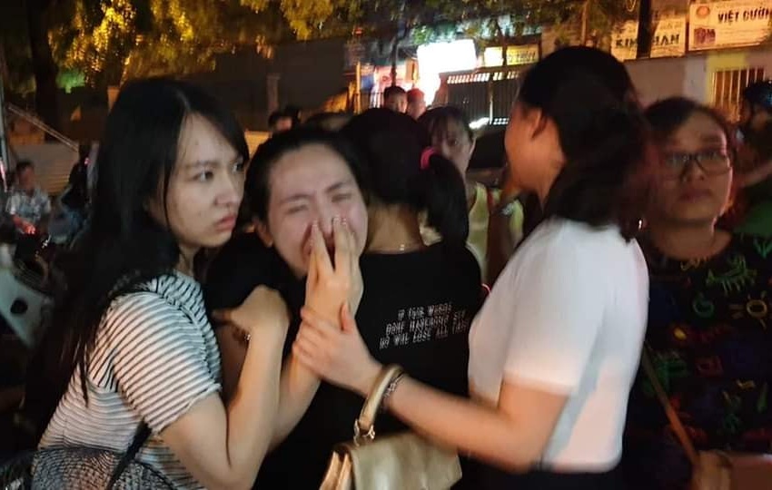 Hình ảnh người thân cháu L. bật khóc tại bệnh viện tối ngày 6/8.