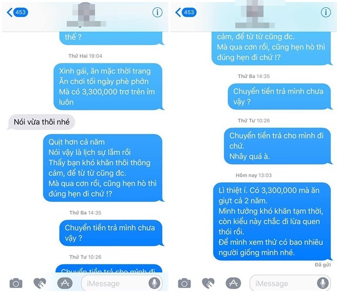 Đáng nói hơn, đây không phải trường hợp duy nhất bị hot girl này quỵt tiền. Sau khi bài viết này lan truyền khắp mạng xã hội đã có thêm hai người khác lên tiếng tố cáo hot girl này đã nợ tiền không trả còn lên facebook chửi và dọa đánh người.