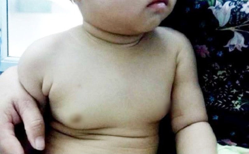 Dù mới 22 tháng tuổi nhưng tuyến ngực của bé gái phát triển bất thường. Ảnh bác sĩ cung cấp.