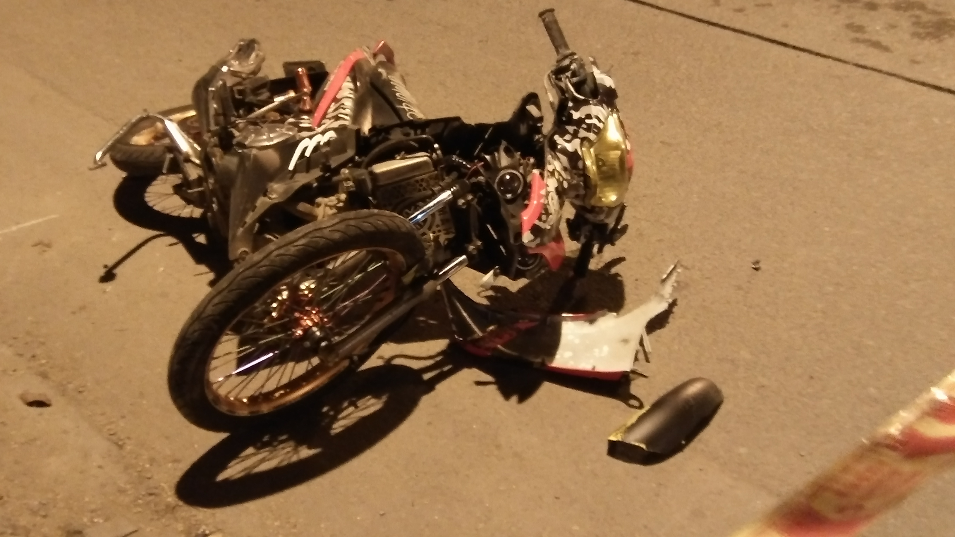 Tại hiện trường, hai thanh niên nằm chết cạnh xe máy là đoạn đường cong của tuyến đường Kinh Nước Đen. Trên vỉa hè và trên tường rào của trường học có vết cày và đâm va của xe máy.