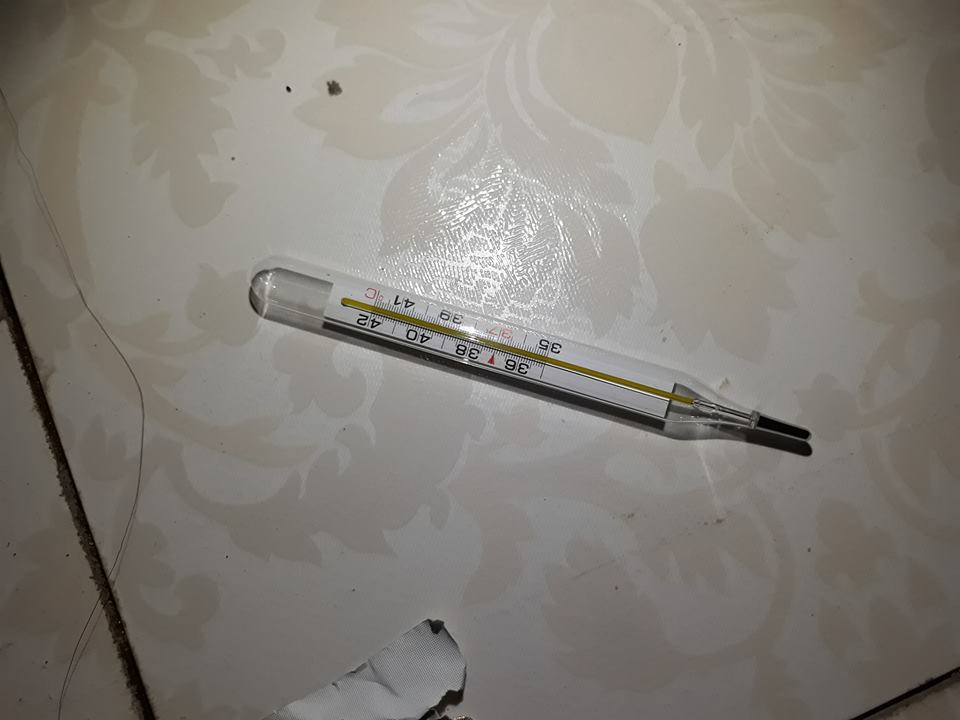 Nhiệt kế chỉ 42 độ C khi đặt dưới nền nhà.