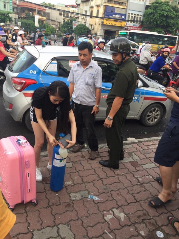 Nhiều người không khỏi ngán ngẩm với hành động khi đã bước xuống xe cô gái nghiện bóng vẫn tiếp tục tranh thủ bơm bóng. Và dù đã có sự nhắc nhở của lực lượng an ninh trật tự thế nhưng nàng ta vẫn bỏ ngoài tai. Thậm chí, theo một nguồn tin cho biết cô gái trẻ còn hồn nhiên nhờ một chiến sĩ Cảnh sát giúp cô bơm bóng.