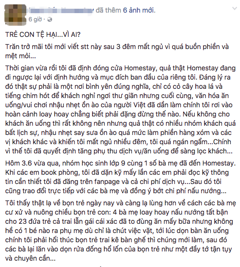 Sự việc được chủ một homestay, nơi những học sinh này thuê để nghỉ dưỡng chia sẻ lên trang cá nhân thu hút hàng chục nghìn lượt thích và chia sẻ.