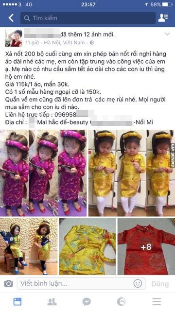 Dạo qua các trang bán hàng mình tìm được Facebook của 1 cửa hàng trên Mai Hắc Đế đang đổ buôn số lượng lớn các thể loại áo dài người lớn trẻ em cách tân. Chủ cửa hàng khá nổi trên Facebook và có cửa hàng đàng hoàng trên mặt phố nên cũng phần nào yên tâm, mình đã đặt trước 100 bộ đồ để chuyển qua Anh bán và gửi kèm theo gần 200 bộ đồ của em gái mình chuyển cùng sang bán.