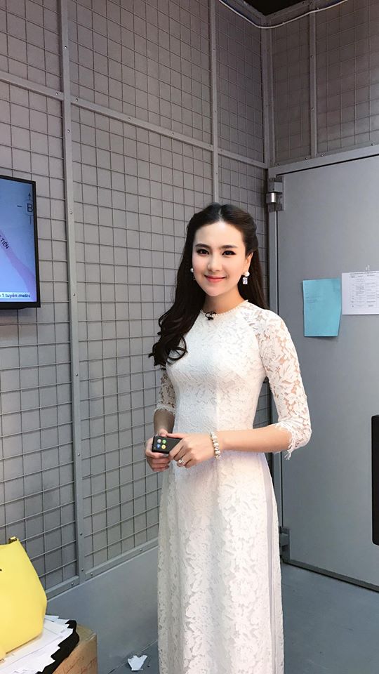 Cô nàng thời tiết Mai Ngọc xinh đẹp trong ngày đi làm đầu tiên.