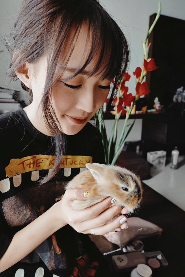 Bạn gái Phở Đặc biệt Sun HT bên cạnh thú cưng.