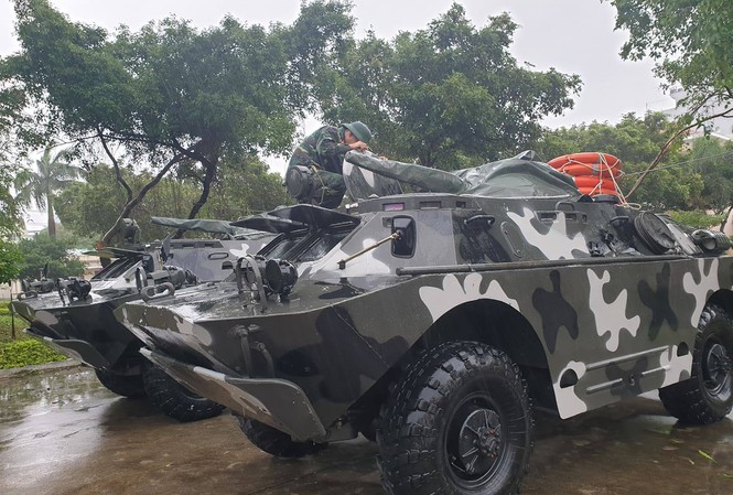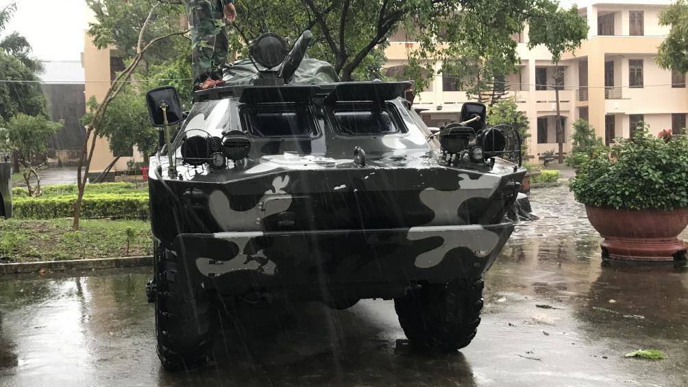 Xe bọc thép chuẩn bị ứng phó trong bão. Ảnh: báo Pháp luật TP HCM.