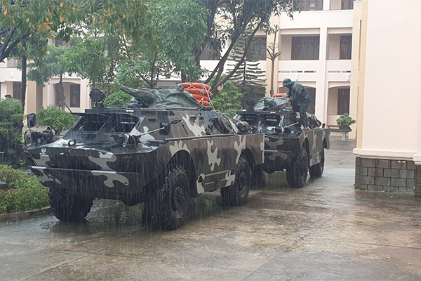 Chiều nay, Bộ Tư lệnh Quân khu V đã huy động 10 xe bọc thép BTR - 152 tham gia hỗ trợ các địa phương. Đây là phương tiện linh hoạt trong tác chiến cơ động, có thể chở đến 20 người cùng hàng hóa, lội nước đến các vùng chia cắt.