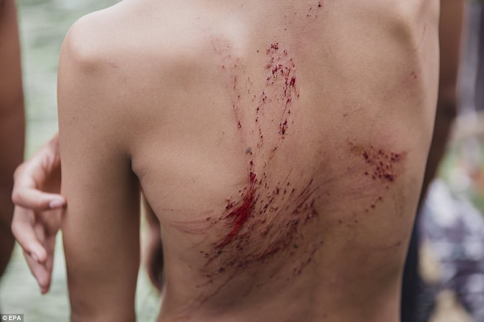 Các thanh niên giúp nhau thoa hỗn hợp đặc biệt lên những vết thương để giúp sát trùng và mau chóng lành lặn.