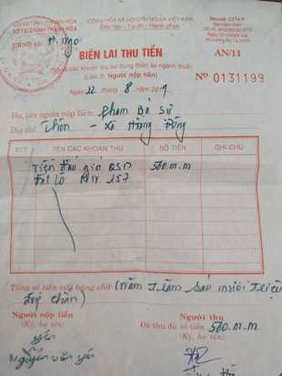 Một trong nhiều biên lai thu tiền bà Hòa xác lập. Ảnh: báo Công Lý