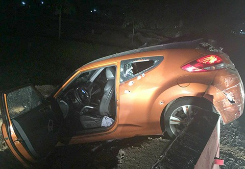 Xe ôtô của Đạt dính đạn của cảnh sát. Ảnh: VnExpress