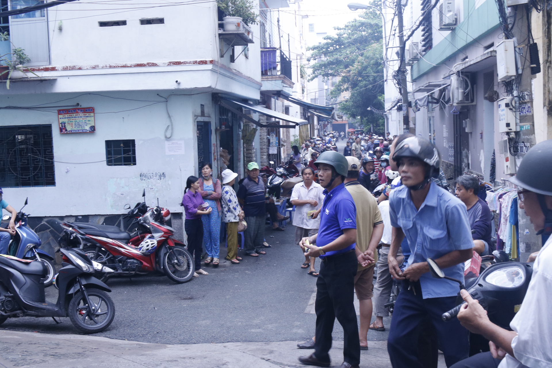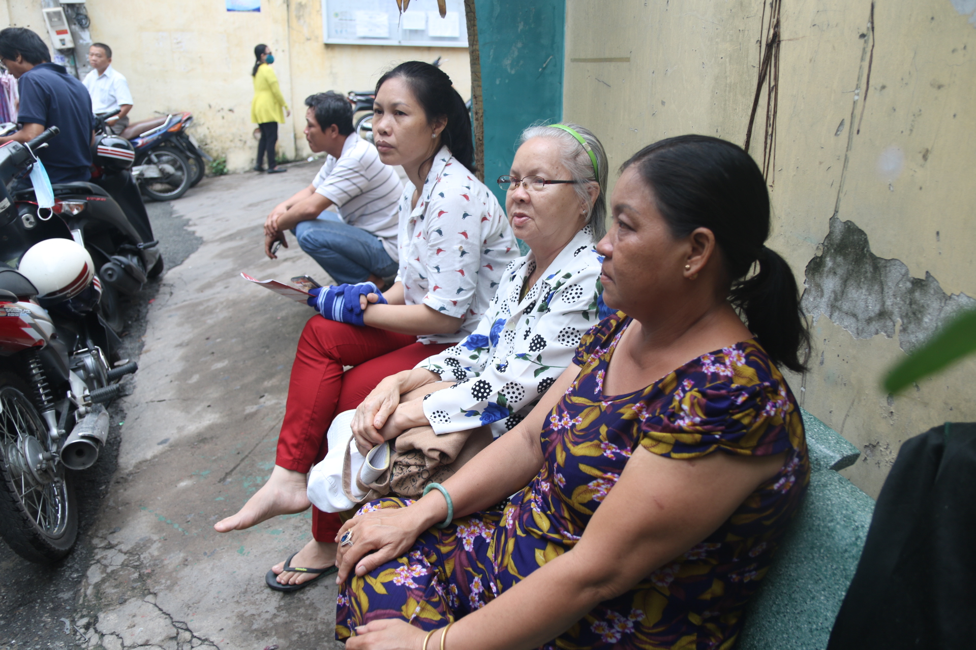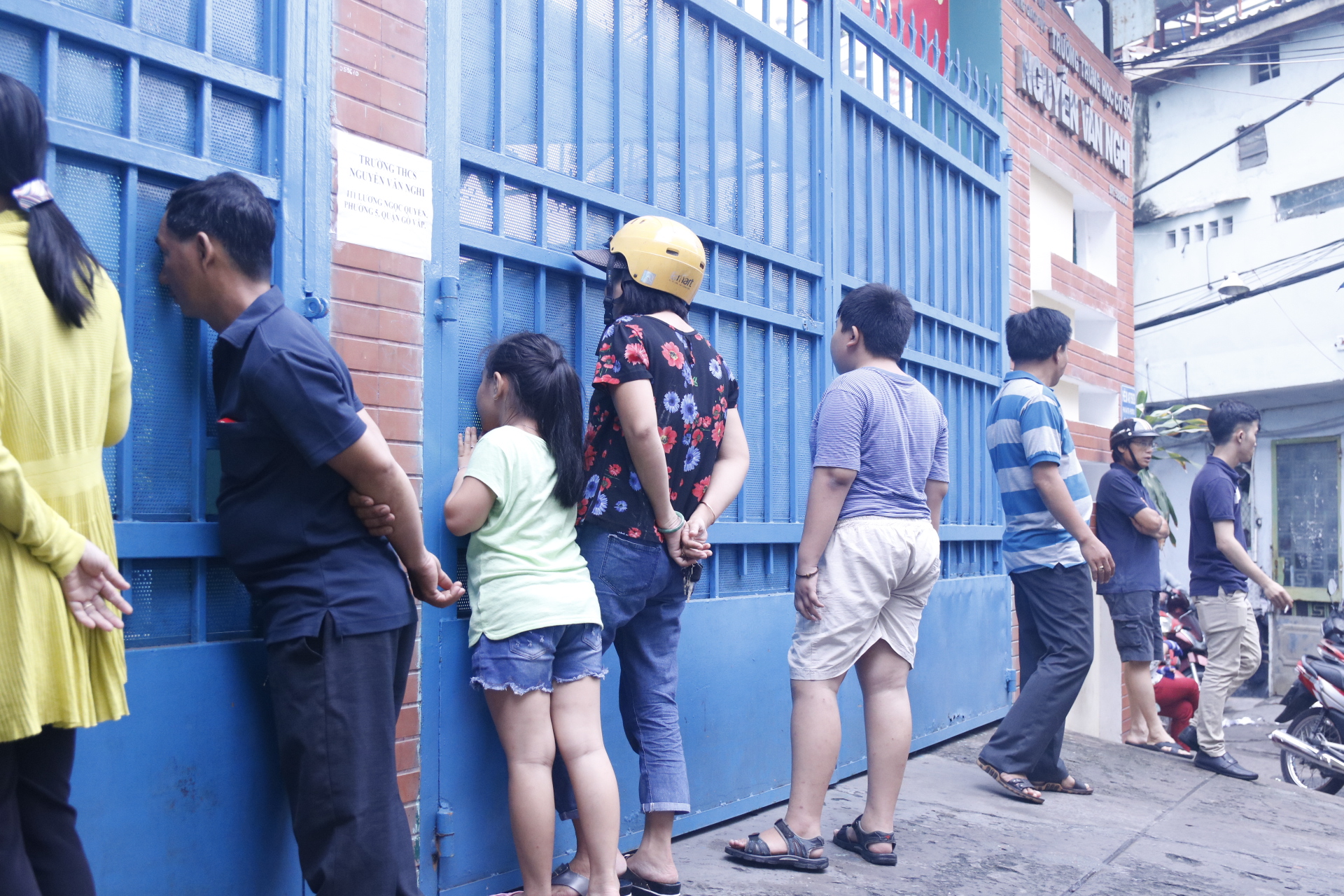 Rất đông phụ huynh đứng chờ con em phía bên ngoài với vẻ mặt lo lắng