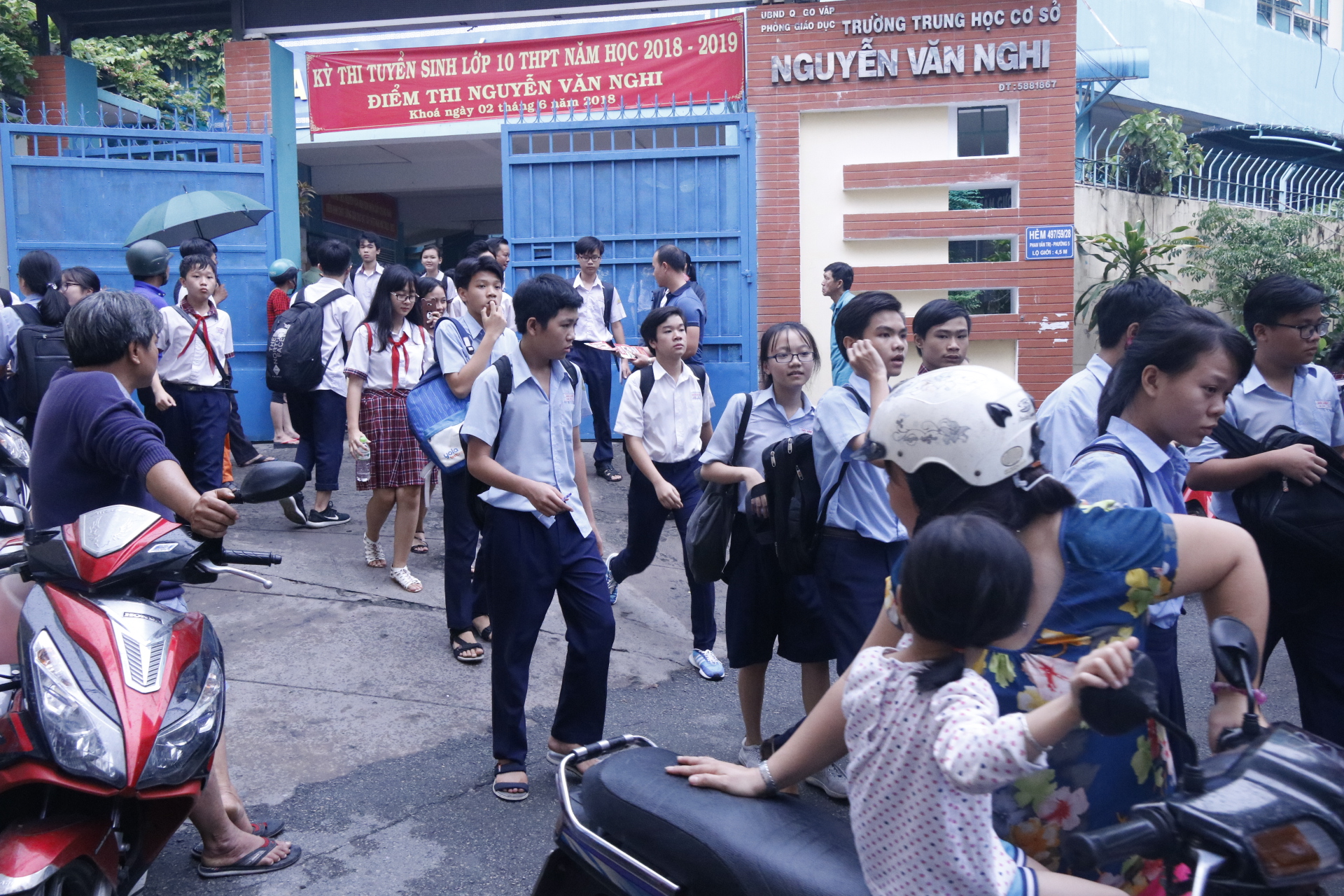 Tại hội đồng thi trường Nguyễn Văn Nghi - Gò Vấp đã có rất nhiều phụ huynh đứng đợi đón các thí sinh kết thúc môn thi thứ hai trong ngày đầu tiên. Không thua kém thí sinh, các phụ huynh đều tỏ ra rất sốt ruột và lo lắng.
