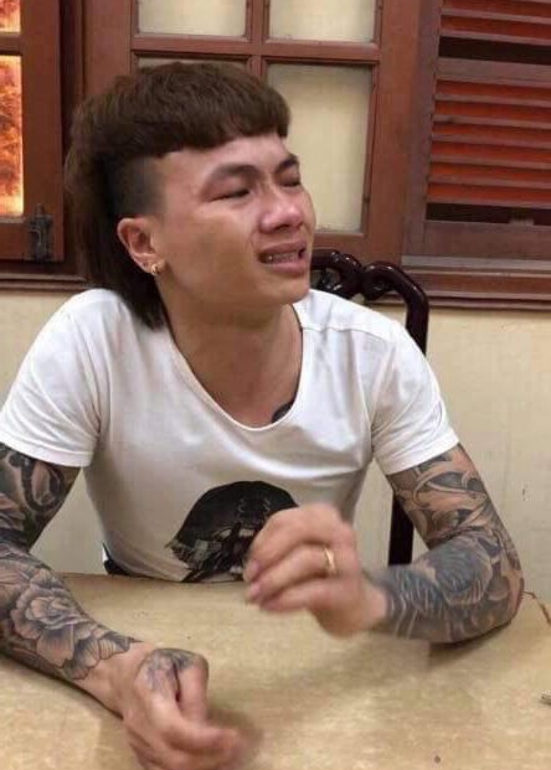 Khá “Bảnh” bật khóc tại cơ quan công an sau khi bị bắt.