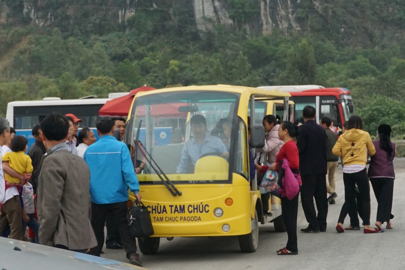 Để vào chùa Tam Chúc nếu đi bộ người dân phải vượt quãng đường 3km từ bãi gửi xe. Do lượng người đổ về ngày khai hội quá đông mặc dù có hàng trăm xe điện được bố trí phục vụ du khách, hoạt động gần như hết công suất nhưng luôn trong tình trạng “cháy xe”.