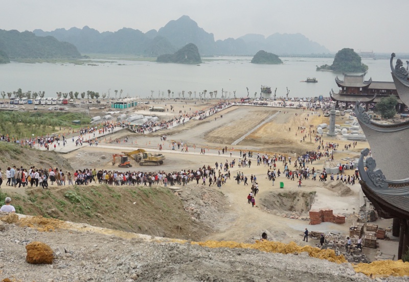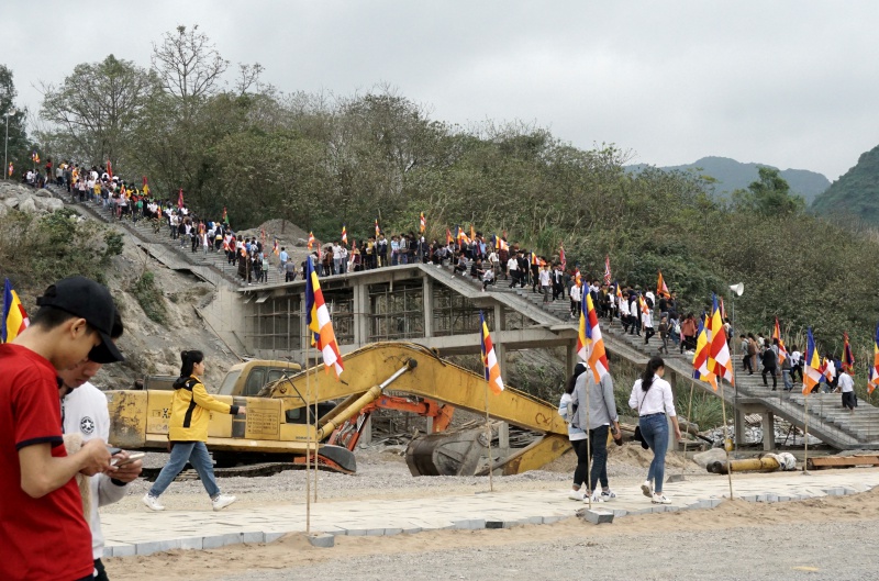 Các ngả đường lên chùa Tam Chúc đều đông nghịt du khách, phần vì tò mò vì đây là ngôi chùa lớn nhất thế giới, phần vì đến chùa để cầu mong một năm đầy sức khoẻ, bình an.