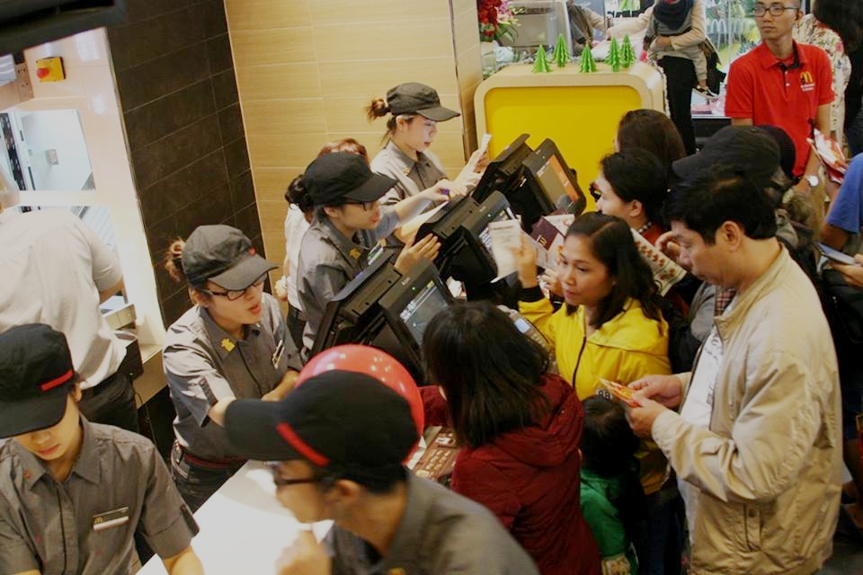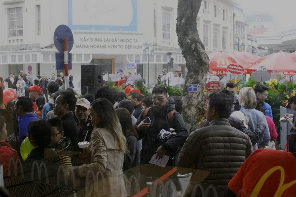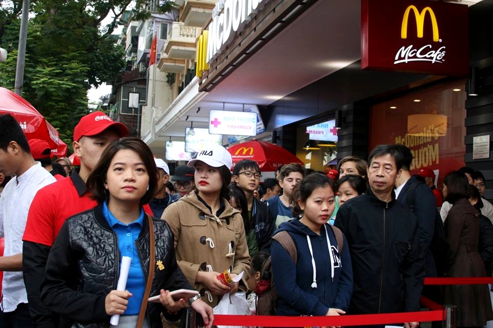 Sáng nay là thời gian Hà Nội tổ chức phố đi bộ quanh Hồ Gươm, vì thế, lượng khách đổ về cửa hàng McDonald's mỗi lúc một đông. Ngoài việc đánh giá đồ ăn ở đây ngon, không gian đẹp, đắc địa thì nhiều cũng thừa nhận, họ xếp hàng chờ đợi chỉ vì háo hức, muốn biết miếng hamburger nổi tiếng từ Mỹ ngon đến cỡ nào.
