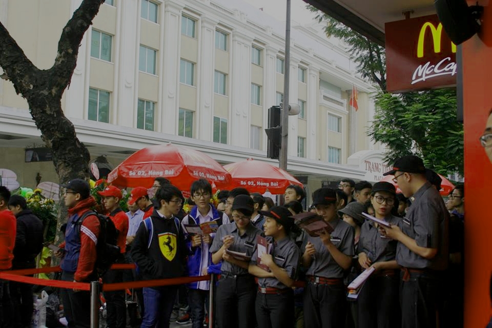 Thông tin hãng McDonald's tấn công thị trường Hà Nội khiến nhiều người chú ý. Cửa hàng đầu tiên này khai trương tại 2 tầng của tòa nhà Harphaco, có mặt tiền ngay phố Hàng Khay và Hàng Bài ở vị trí trung tâm Thủ đô.