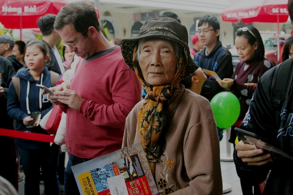 Có mặt từ lúc 8h15, cụ Nga (80 tuổi) chia sẻ: “Hôm nay bác hạ quyết tâm phải xếp hàng bằng được, nhất định phải đến cửa hàng ăn trực tiếp chứ mọi lần vào thăm con gái ở Sài Gòn, bác toàn được con mua về tận nhà”.