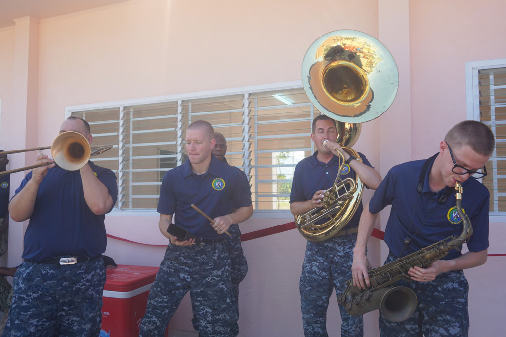 Trước buổi khánh thành ban nhạc Hạm đội 7, hải quân Mỹ biểu diễn nhạc cụ gây nhiều ấn tượng cho người dân.