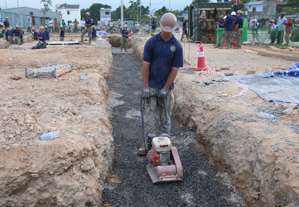 Công trình khởi công từ ngày 20/3, với hơn 50 người lính hải quân hai nước Mỹ, Nhật Bản tham gia, vật liệu xây dựng được mua tại địa phương.