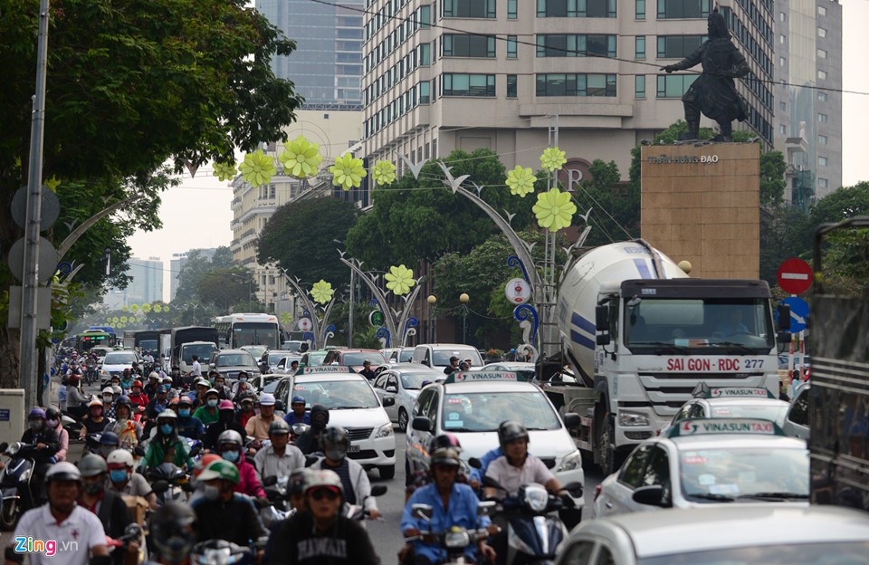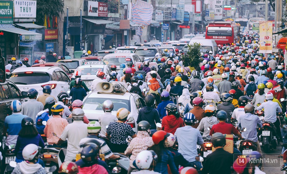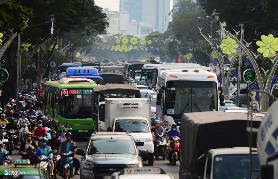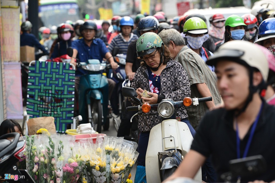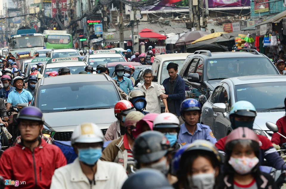 Trong những ngày cận Tết Nguyên đán Mậu Tuất, nhiều tuyến đường ở TP.HCM lượng xe tăng đột biến khiến giao thông qua lại của người dân rất khó khăn. Tại khu vực trung tâm ngày 8/2 (23 tháng Chạp) những tuyến đường như 3/2 - Lê Hồng Phong - Sư Vạn Hạnh, CMT8 - Nguyễn Văn Đang - Tô Hiến Thành (quận 10), Trường Chinh - Cộng Hòa (quận Tân Bình), Tôn Đức Thắng - Hai Bà Trưng (quận 1)… luôn trong tình trạng dày đặc xe cộ.